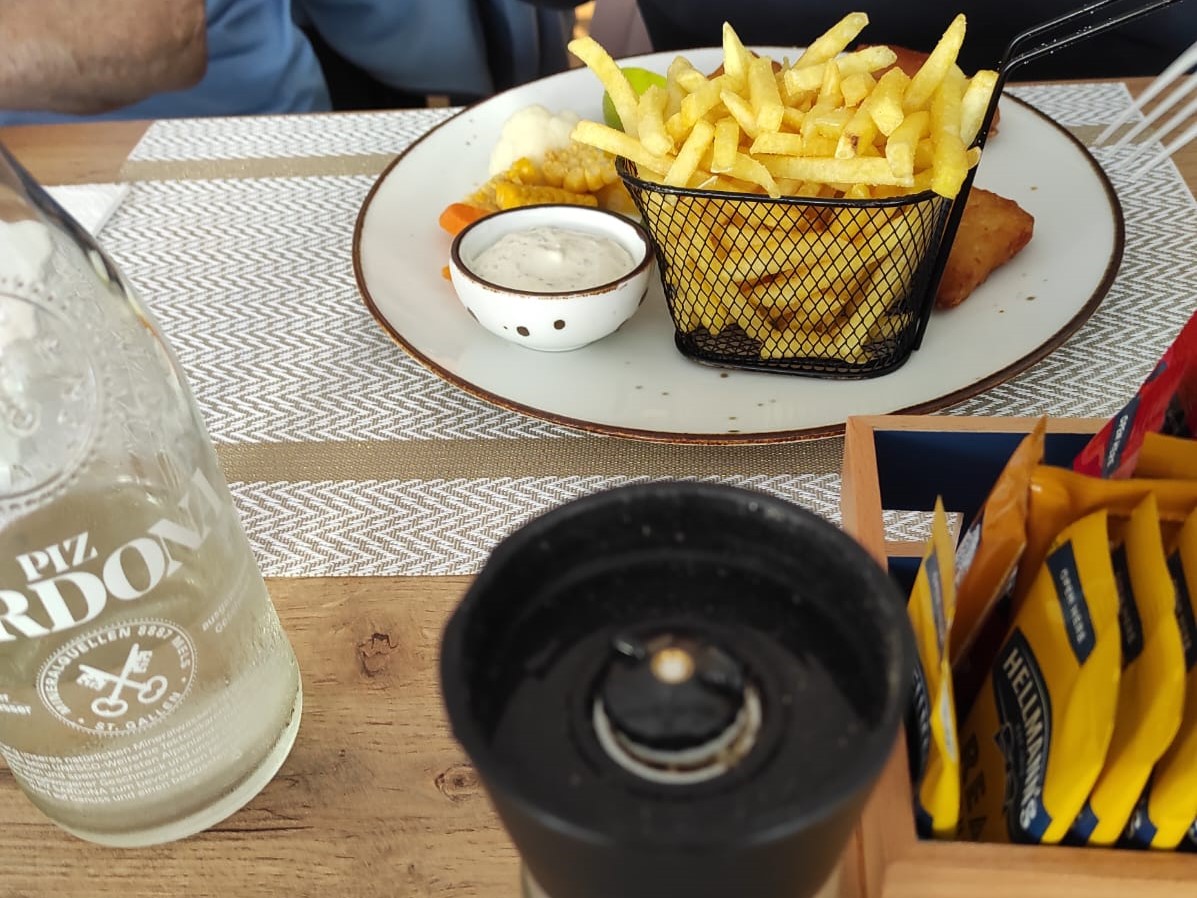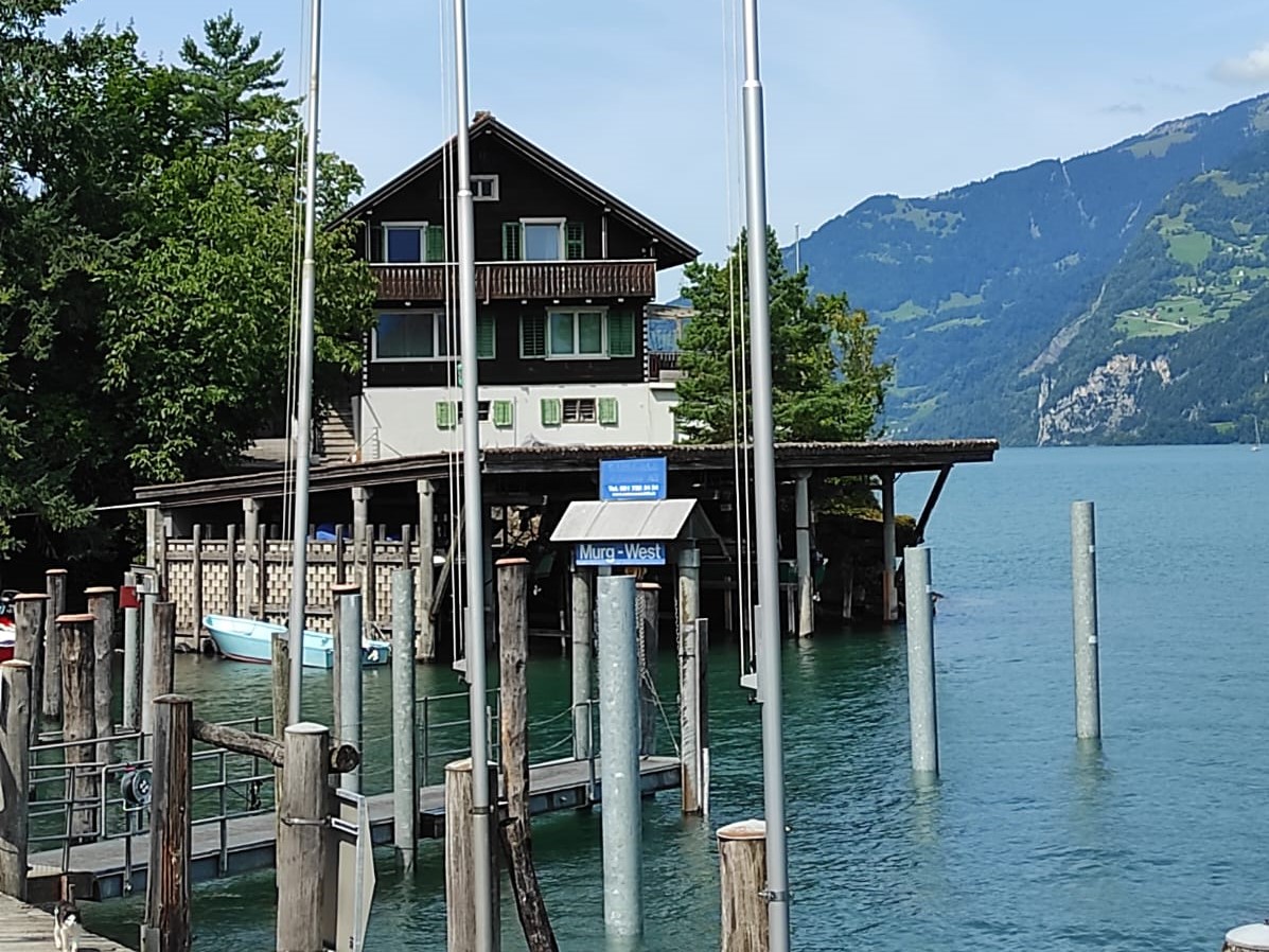 Am Bahnhof angekommen suchten wir den Schiffssteg. Leider kamen wir zu spät, unser Schiff befand sich schon mitten auf dem See! Kurz entschlossen blieben wir in Murg, um das Mittagessen dort einzunehmen.